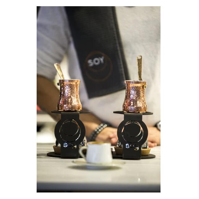 Acest Stand Dublu Eleganță este conceput special pentru a susține două ibrice SOY, oferindu-le stabilitate și un loc sigur în timpul și după prepararea cafelei. Fabricat din materiale de înaltă calitate, acest stand adaugă un plus de rafinament și ordine în zona de preparare a cafelei, permițându-vă să prezentați cu stil cele două ibrice, fie în bucătăria de acasă, fie într-o cafenea.