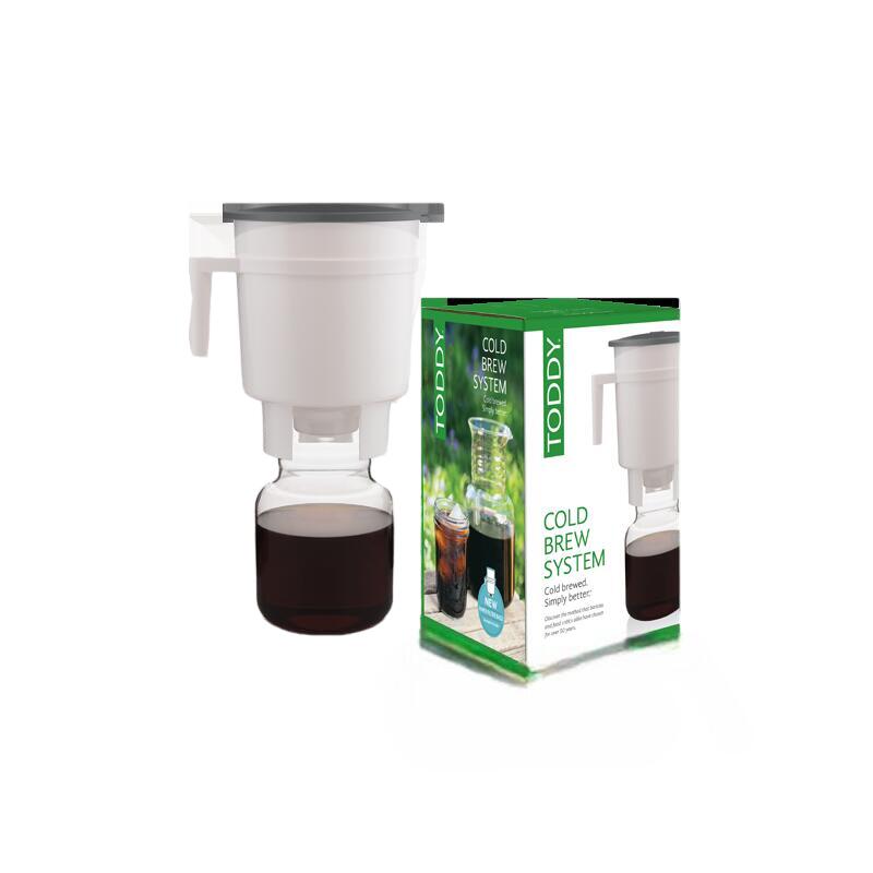 Dispozitivul Toddy Cold Brew System este un aparat de cafea non-electric, simplu de utilizat, perfect pentru a prepara cafea rece delicioasa. Foloseste un proces de filtrare a apei pentru a obtine extract de infuzare rece, fin, bogat si concentrat, care poate fi servit la concentratia dorita.