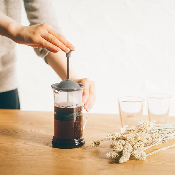 Puneti cafeaua macinata in presa si adaugati apa fiarta. Puneti pistonul si lasati cafeaua sa se infuzeze. Apasati incet pistonul in jos, turnati cafeaua intr-o ceasca si bucurati-va.