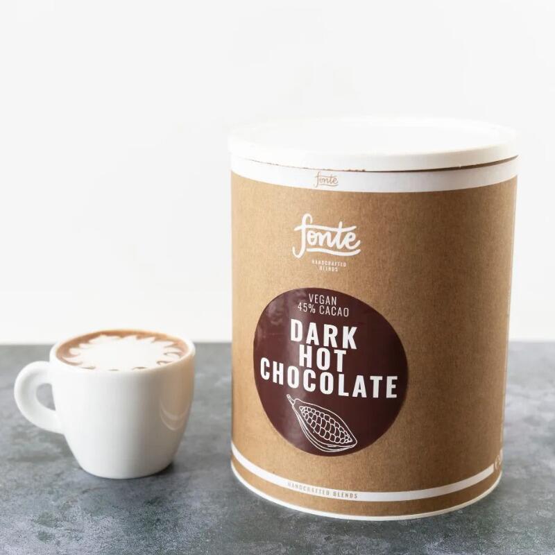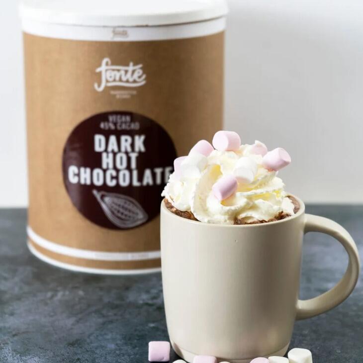 Fonte Dark Hot Chocolate 2kg 45% Cacao este o ciocolată caldă premium, recunoscută pentru conținutul său ridicat de cacao și gustul intens. Acest produs este ideal pentru iubitorii de ciocolată care apreciază o băutură bogată și aromată.