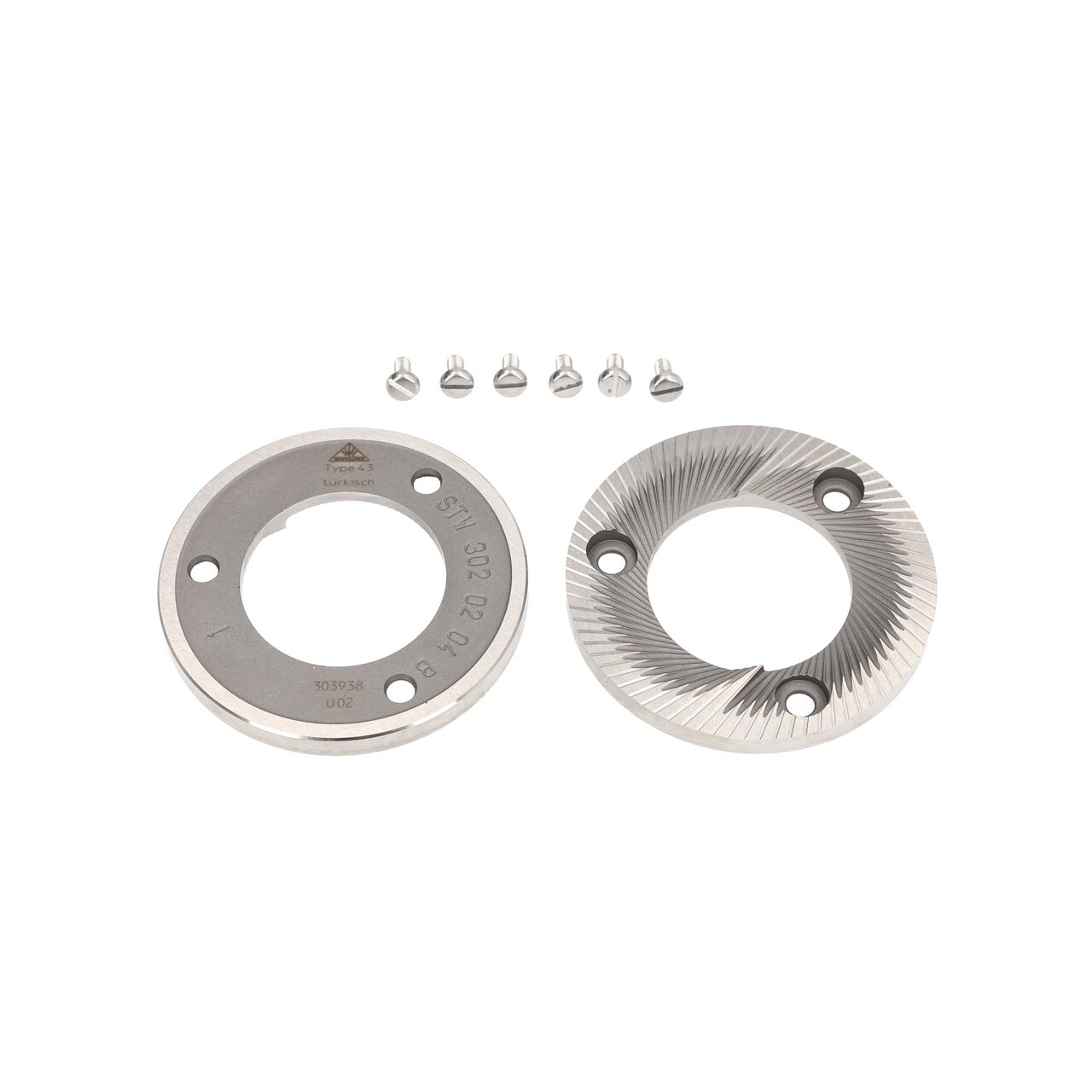 Setul original de discuri de măcinare MAHLKÖNIG EK43 TURKISH, cu diametrul de 98 mm, este esențial pentru obținerea unei măcinături fine, specifică cafelei turcești, utilizând râșnițele EK43 și EK43S.